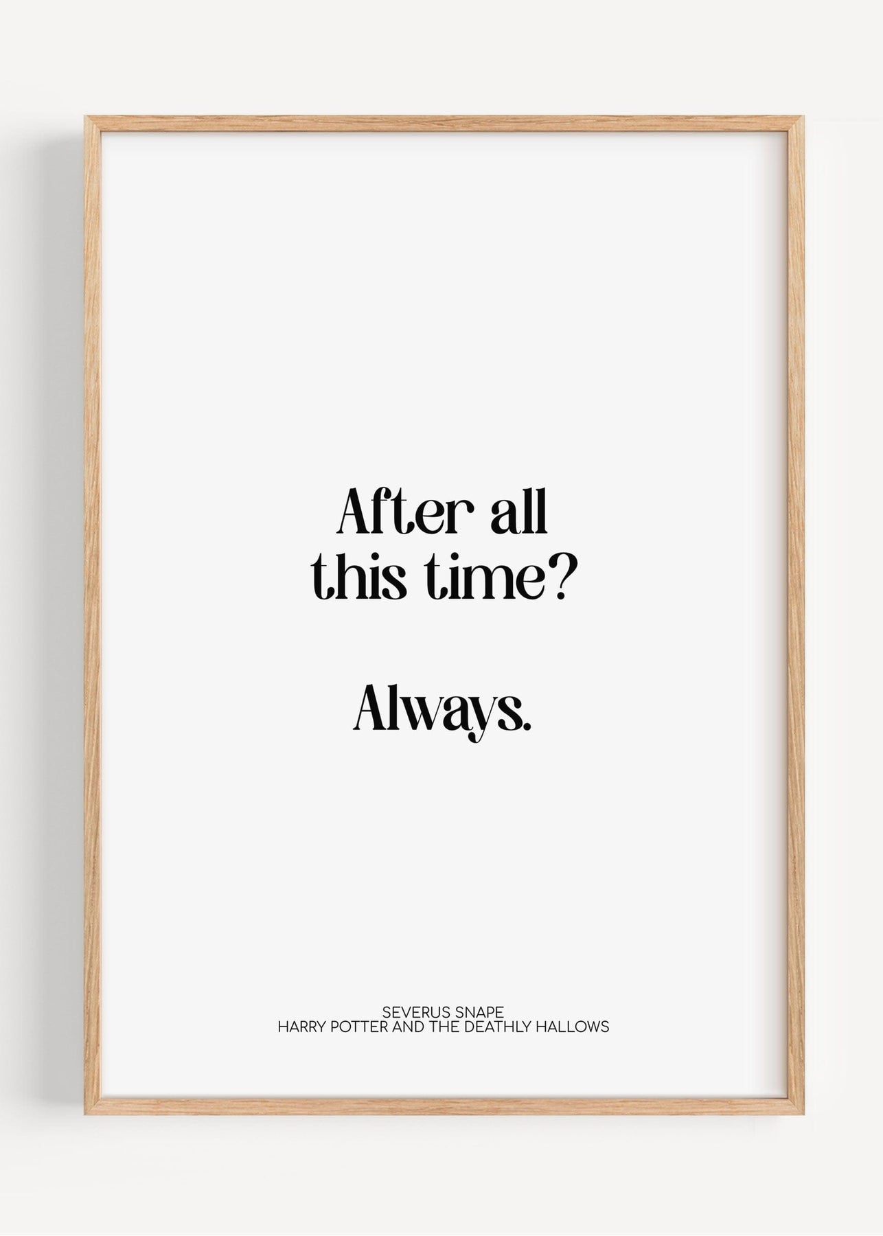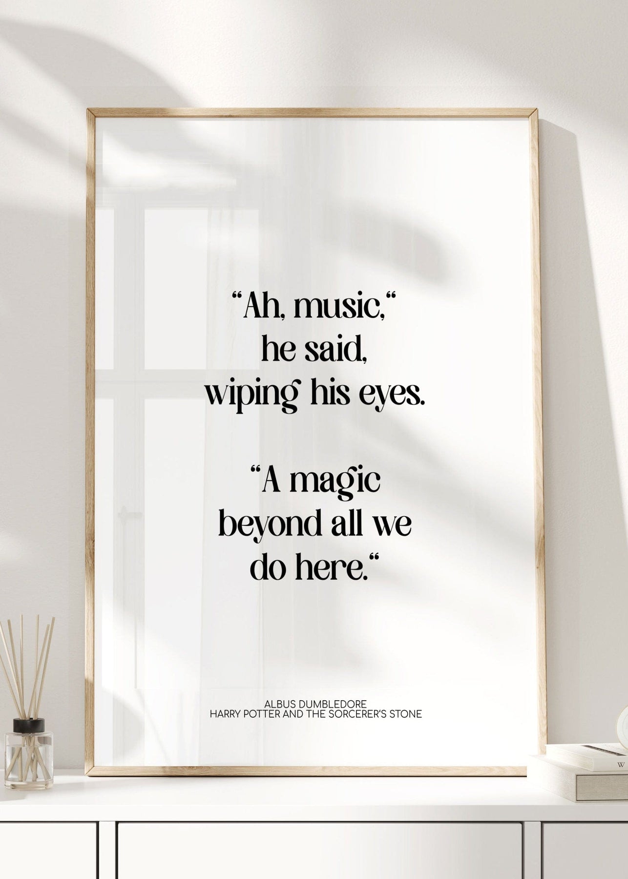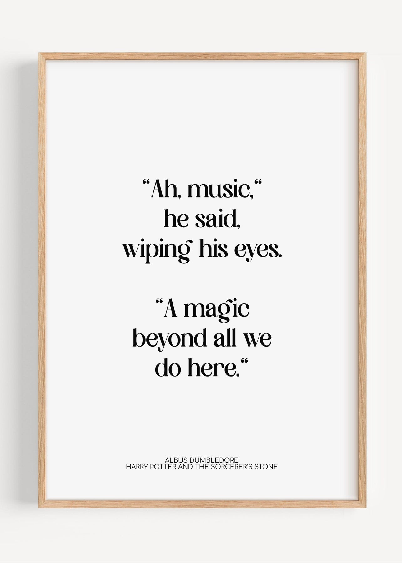 A minimalist Harry Potter quote print featuring Albus Dumbledore’s tender line from Harry Potter and the Sorcerer’s Stone. Set in refined serif typography on a crisp white background, it is calm, literary and quietly charming.