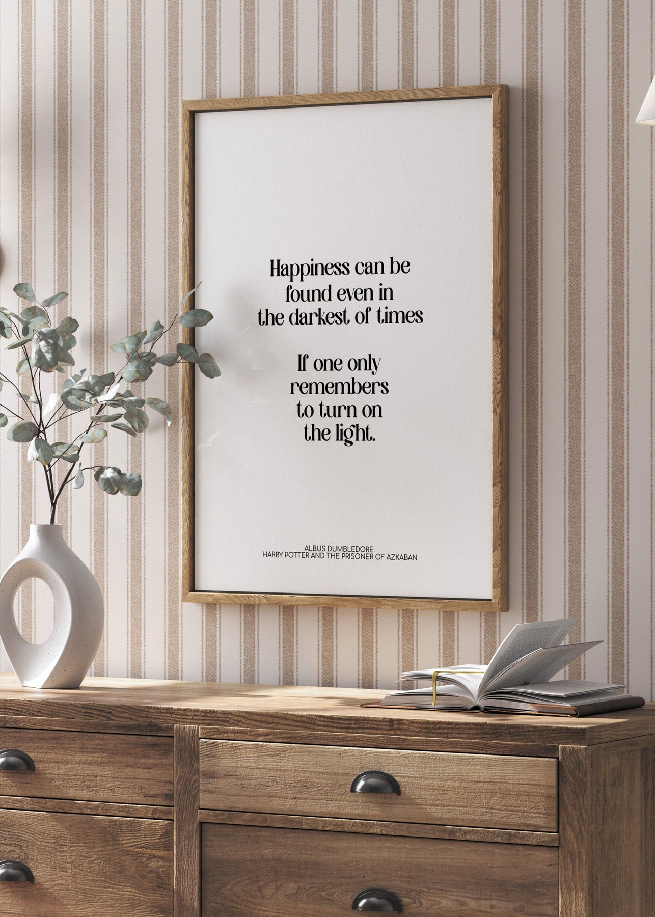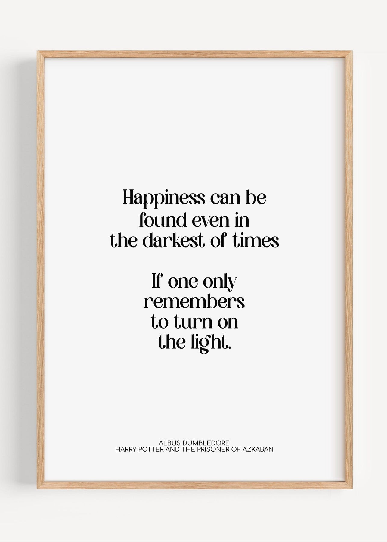 A minimalist Harry Potter quote print featuring one of Albus Dumbledore’s most comforting lines from Harry Potter and the Prisoner of Azkaban. Set in refined serif typography on a crisp white background, this piece feels calm, hopeful and quietly reassuring.